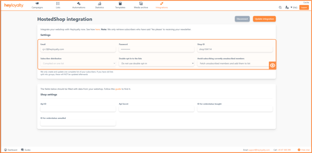 With the above preparation, you are now ready to set up the integration between Dandomain Webshop and Heyloyalty.