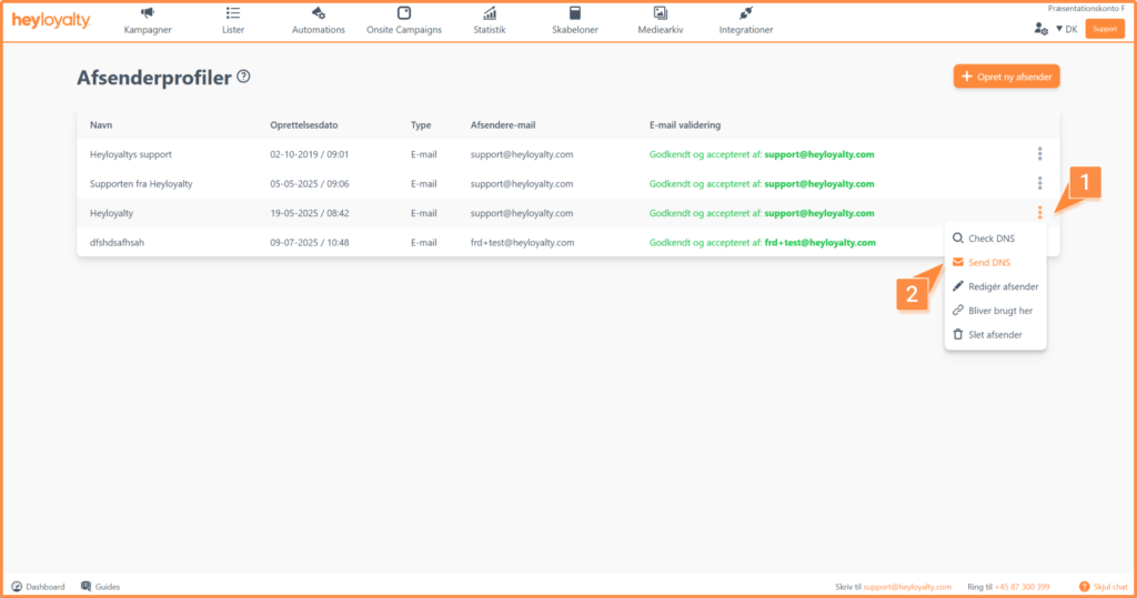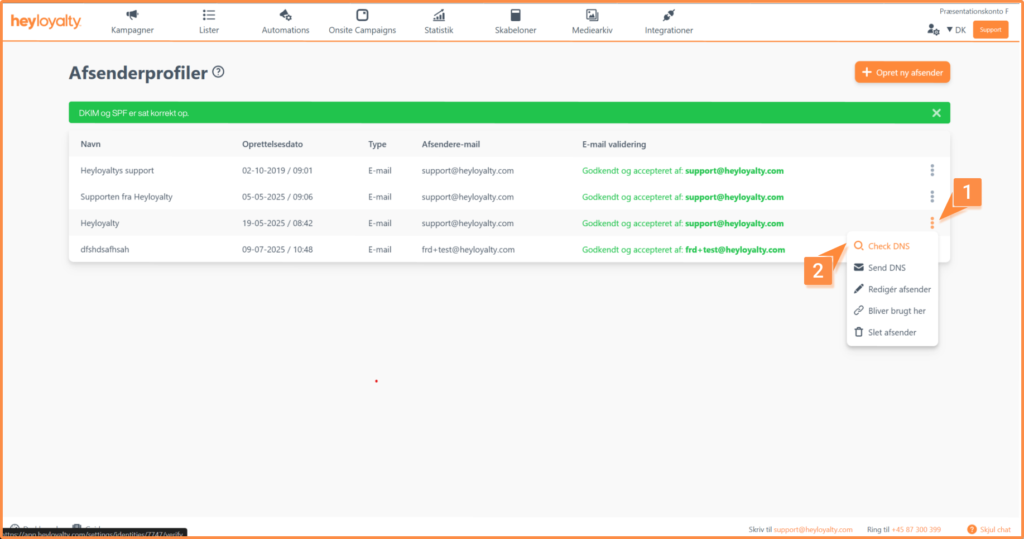 Hvis der står DKIM og SPF er sat korrekt op, er du nu klar til at bruge afsenderprofilen og kan sende både kampagner og automations i Heyloyalty.