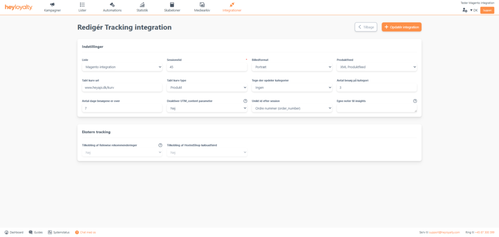 • Trackingintegration på førnævnte liste