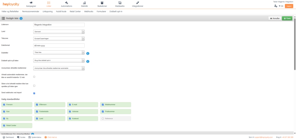 Med ovenstående forberedelse er du nu klar til at opsætte integrationen mellem Magento og Heyloyalty.