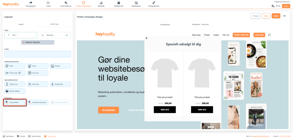 Hvis du har et produktfeed på din konto, så kan du bruge produktfeedet til at trække produkter ind i din onsite campaign – præcis som du kender det fra dine e-mailkampagner og -automations.