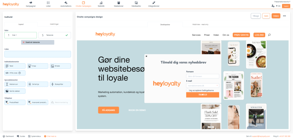 Design din onsite campaign og tilpas formularen efter din virksomheds behov.