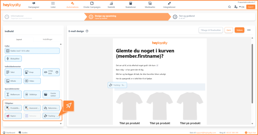For at flette det eller de tabte produkt(er) ind, skal du bruge tilføjelsen Tracking – Tabt kurv.