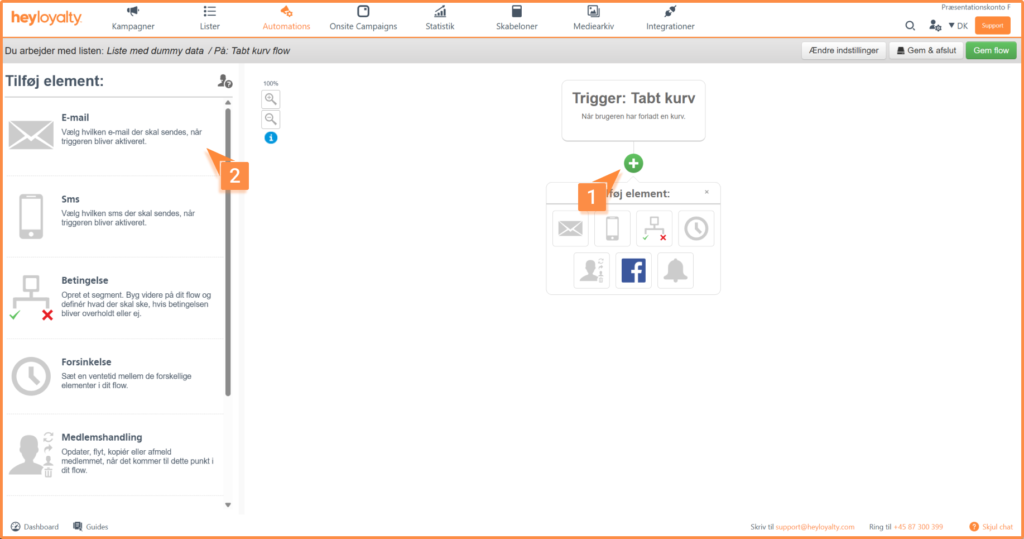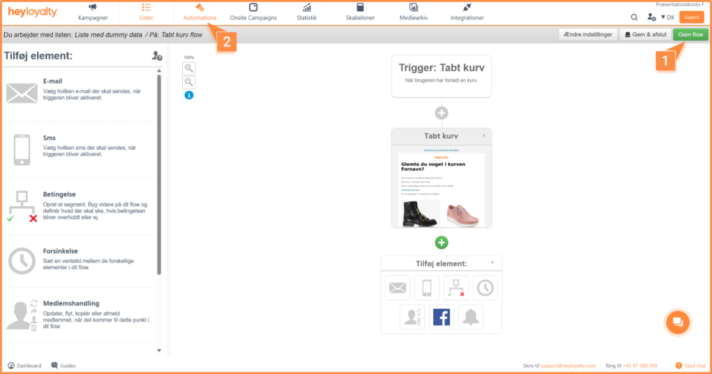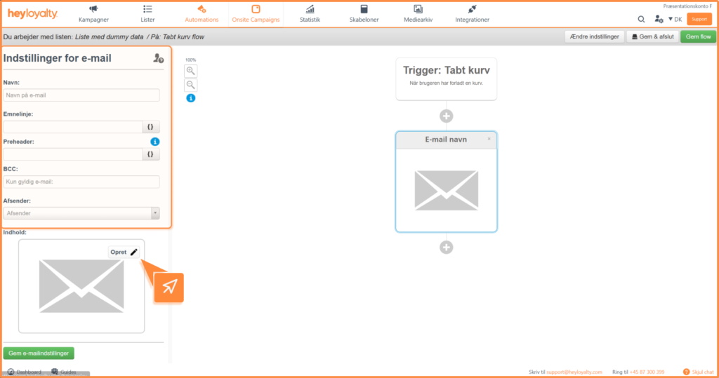 Opsæt din tabt kurv automation ved at klikke på Automations –> Opret ny automation –> Opret automationflow.