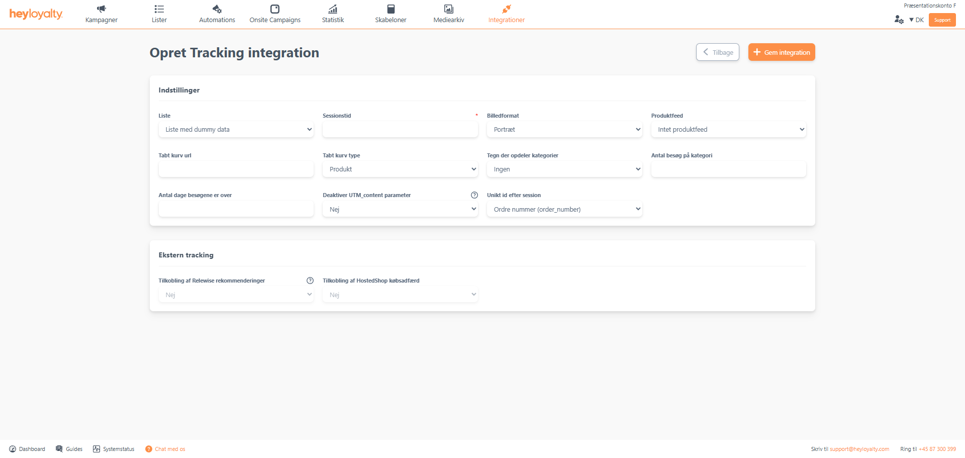 Opsæt Tracking ved at klikke på Integrationer –> Listeintegrationer –> Tracking –> Opsæt integration –> Opret ny Tracking